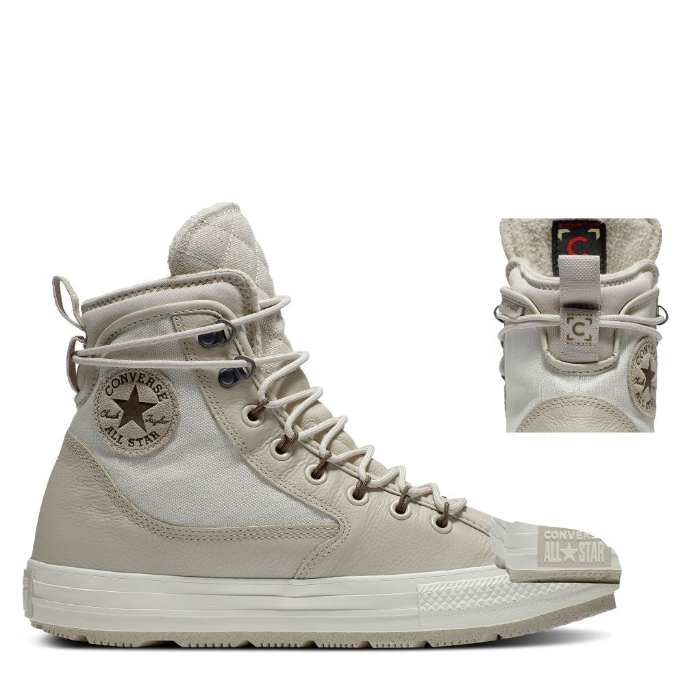 This Counter Climate collection mainstay was created to stand up to the elements. A canvas, water-repellent upper teams up with a waterproof lining to keep you dry. The warm lining helps lock in heat, and a protruding bootie brings the warmth further up. A rubber traction outsole is the final piece of the puzzle, keeping you surefooted on your way. Weatherized All Star.