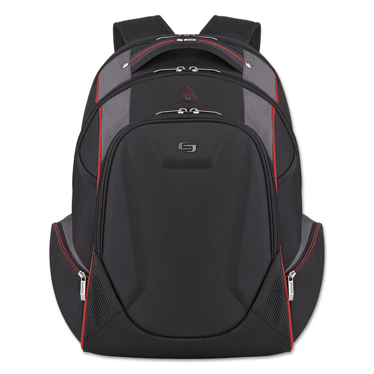 Solo Launch Laptop Backpack, Fits Devices Up To 17.3″, Polyester, 12.5 X 8 X 19.5, Black/Gray/Red