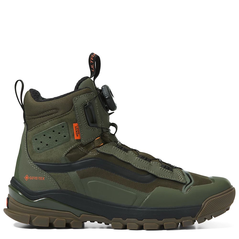Technically advanced and purpose-built on the back of decades of snowboard boot development, the UltraRange EXO Hi GORE-TEX® MTE-3 is built to get you where you’ve never been. Constructed with Vans’ most technically advanced all-weather technology—including GORE-TEX® breathable waterproofing to keep you dry, a heat retaining 3M™ Thinsulate™ insulation package to keep you warm, and an MTE-3 outsole with the All-Trac rubber compound to keep you on your feet—this adventure-based and activity-inspired boot is all-terrain ready and offers maximum protection from the elements. Add in our MTE-3 triple-density comfort package, and you have the baddest Vans MTE product ever built. The UltraRange EXO Hi GORE-TEX® MTE-3 is made with leather, textile, and synthetic uppers.