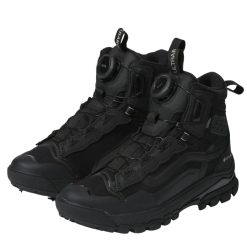 Practical, packable, and wear-at-the-bar-able, the Vans Standard Mid Snow MTE in Black/White is a downsized version of Vans’ best-selling Standard Snow MTE snow boot. With a waterproof vulcanized lower, waterproof seam-sealed construction, a Standard Snow MTE outsole, and a 100-gram weight insulation package, classic Vans style and day-to-day winter weather footwear have finally converged. This mid top boot is made with leather and synthetic uppers.