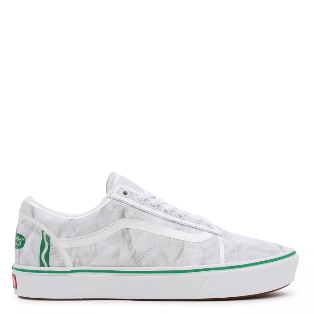 Vans x Crayola collection Crayon print encouraging DIY coloring one-piece constructed interior for a comfy fit Vans ComfyCush foam for increased comfort Added arch support Rubber outsoles for durability and traction Canvas uppers that focus on tongue stabilization Moisture-wicking lining materials.